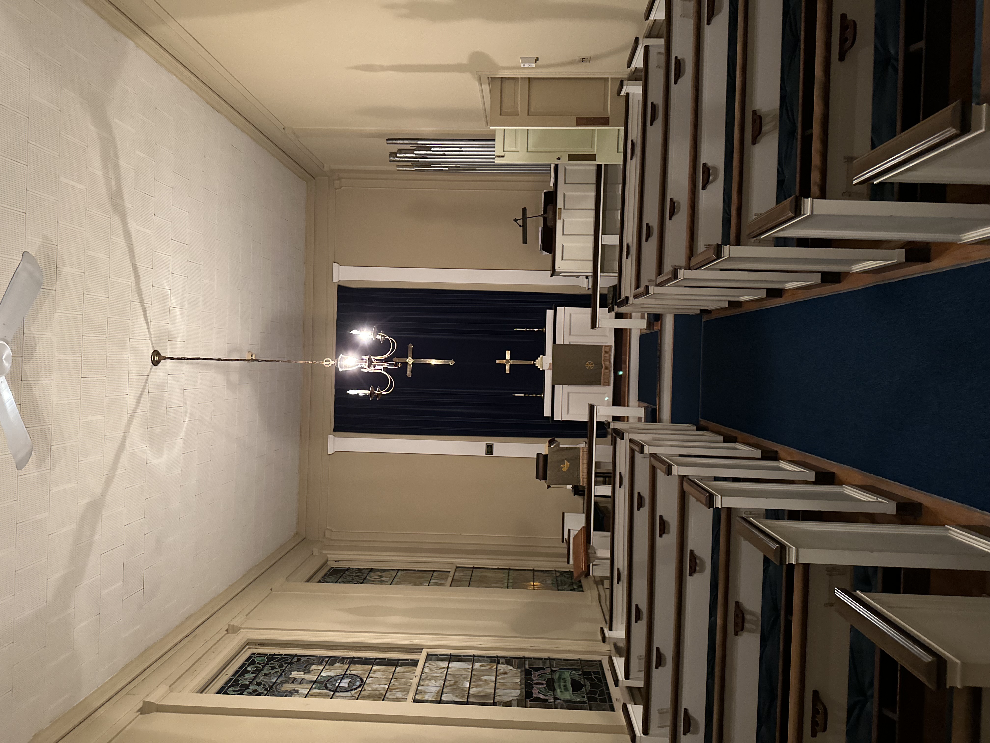 Our chapel is a smaller worship space and seats about 50 in attendance. Seating is